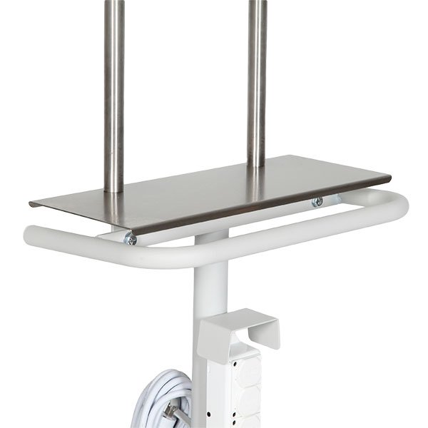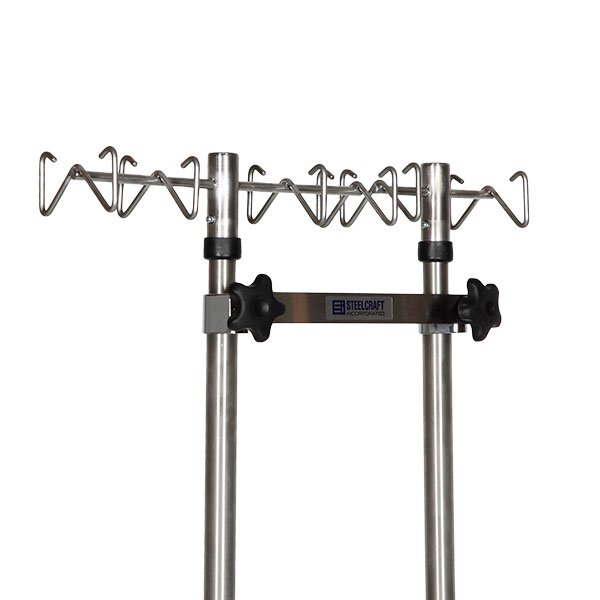 This IV Transport Delivery System is designed to hold six or more pumps. It includes a 6 outlet UL Hospital grade power strip with a 15′ cord. The fabricated steel base has 6 twin wheel casters for easy mobility and the innovative rake top design keeps 12-20 lines organized. Need to use more pumps? Look at our “9 pack” Delivery System.