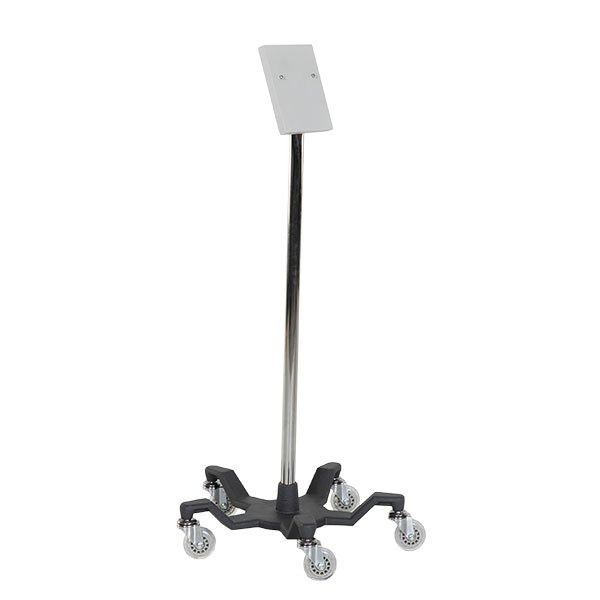 An economical yet sturdy design with a stationary pole. Customize to your device. The heavy duty cast base has five 3″ roller blade casters for ease of movement.